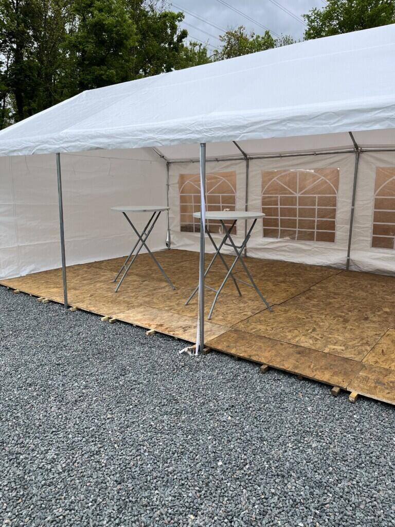 Je met à disposition mon plancher bois de barnum, a installer sur du gazon, gravier, ou terre, très utile à installer au sol sous une tante de réception pour vos fêtes d’anniversaire de mariage où tout simplement en famille et avoir les pieds au sec et ne pas abîmer votre pelouse