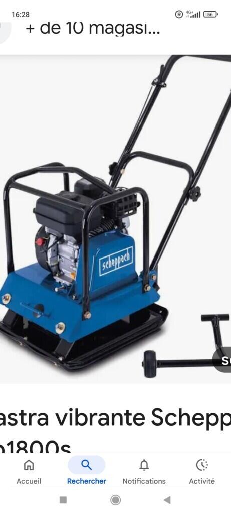 Plaque vibrante idéale pour réalisation d'allées, terrain de pétanque etc… Rentre dans un coffre.