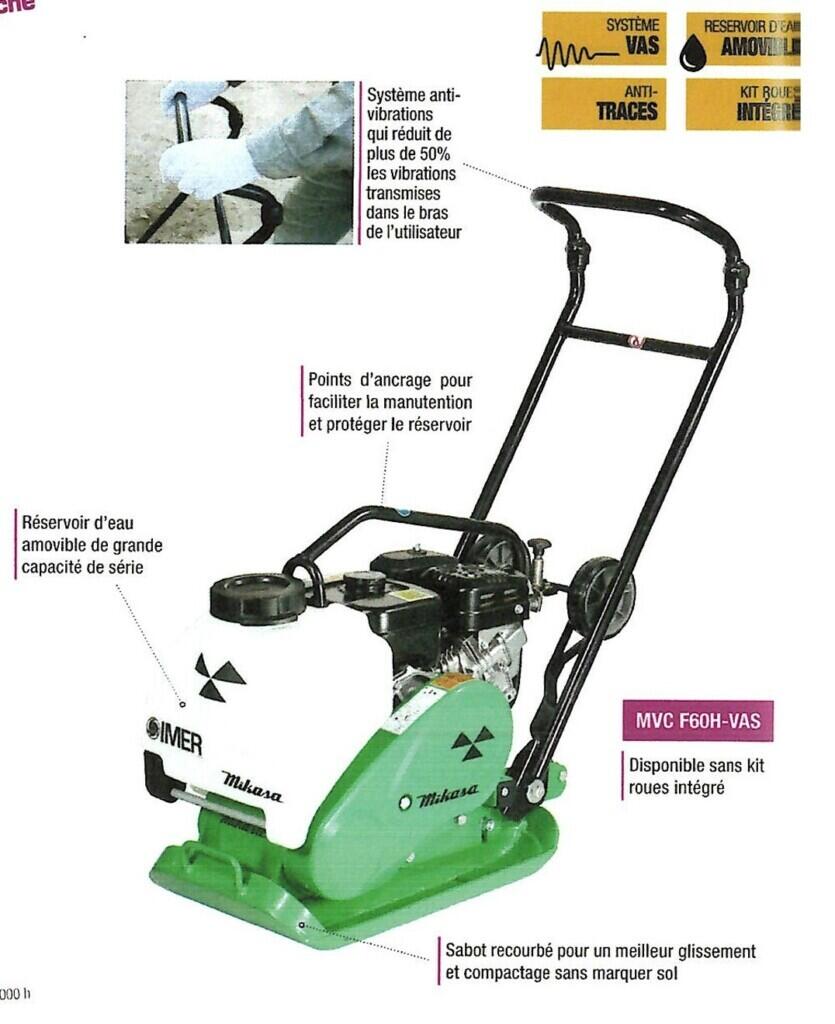 Kit roue intégré afin de faciliter le déplacement de la plaque vibrante.