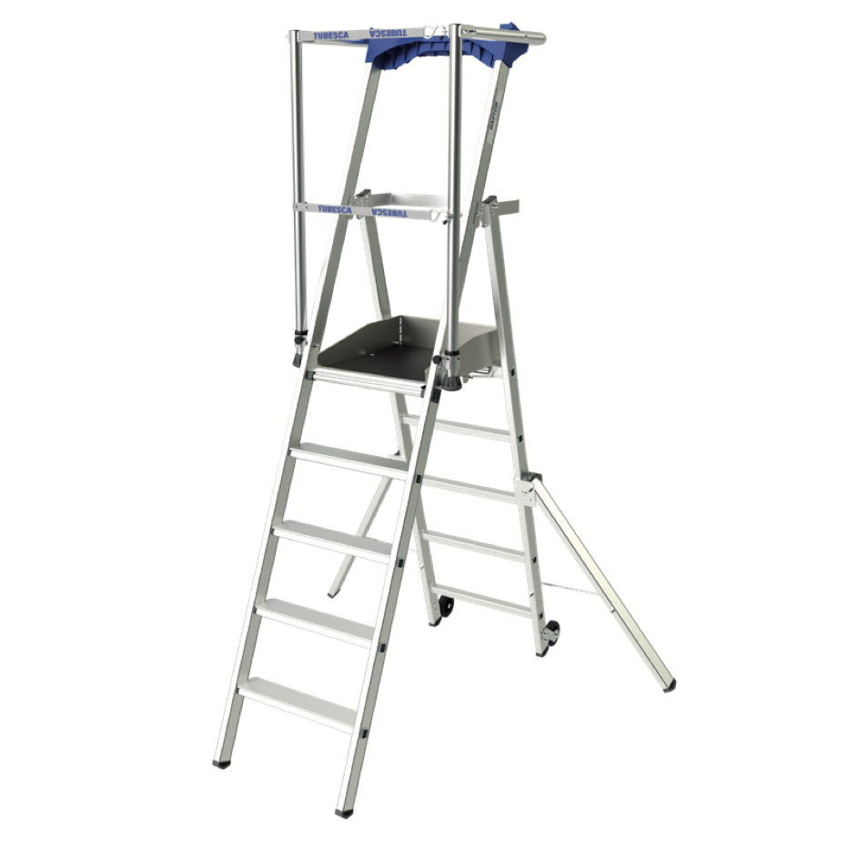 Cette plateforme de travail légère et compacte est aussi maniable qu’un marchepied tout en permettant l’utilisateur de travailler en toute sécurité : garde-corps à 360° et plinthes intégrées.