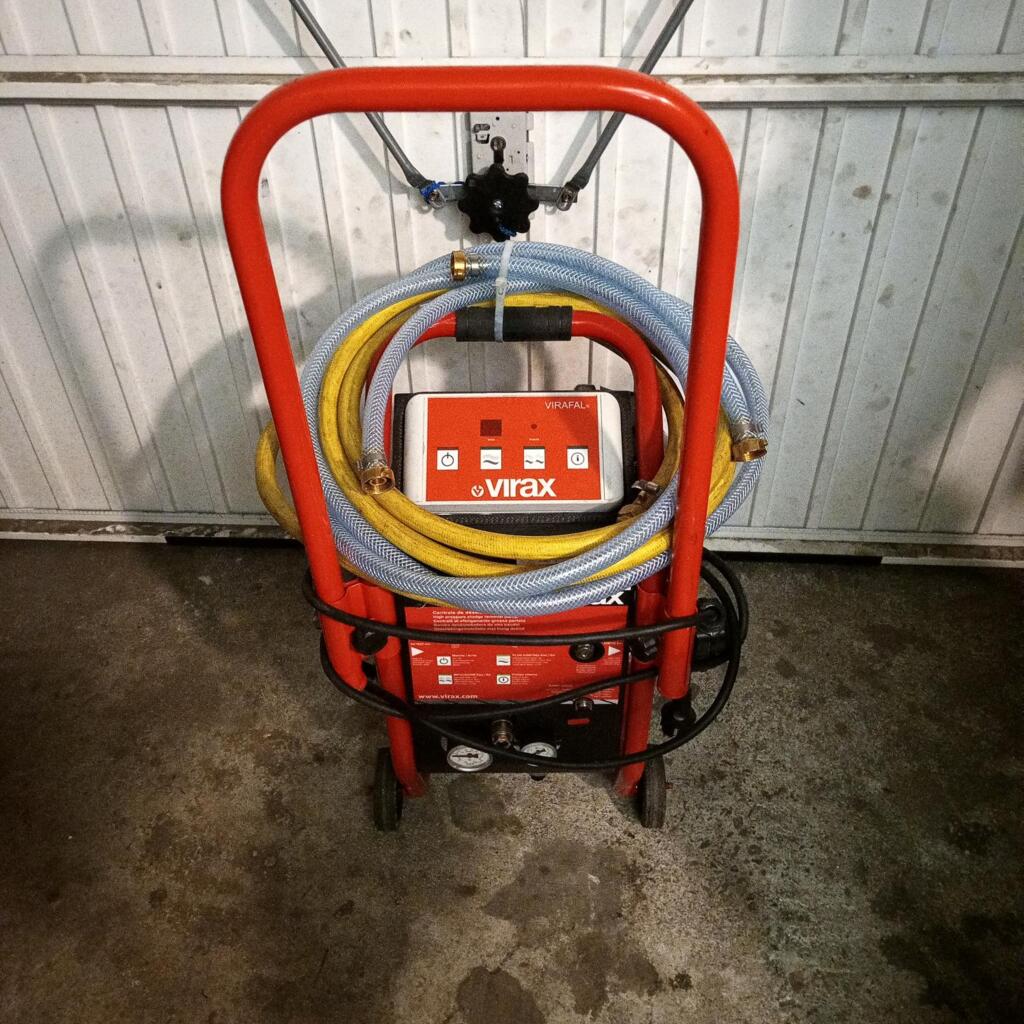 Je loue cette station de désembouage virafal virax. Idéal pour plancher chauffant. Fonctionne avec ou sans produit de traitement (injection d'air comprimé).