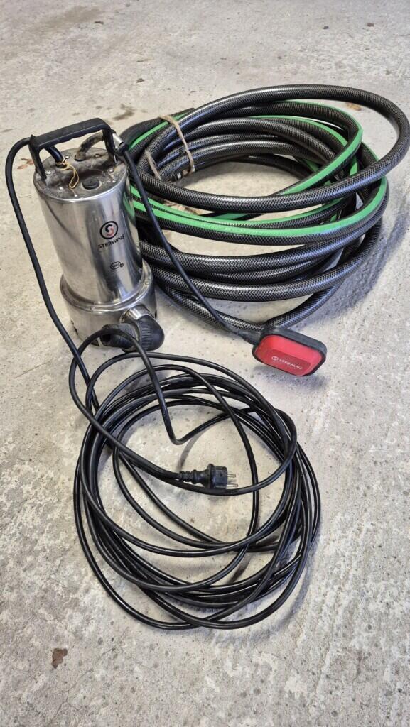 Pompe à eaux chargées. Corps inox, flotteur de mise en route/arrêt. Débit max 18m³/h. Hauteur immersion max 7m. Câble 10m. Fourni avec 15m de tuyau de refoulement diamètre 25.
