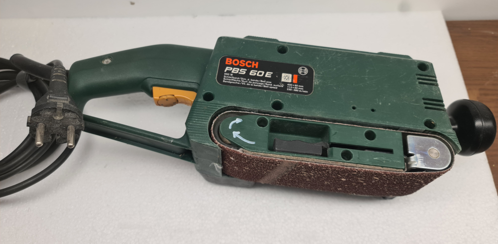 Ponceuse à bande Bosh PBS 60 E très puissante et maniable elle vous permettra de réaliser des ponçages rapides et intenses sur bois et métal . Bandes abrasives grain 40, 60, 80 en suppléments (4€/pce)