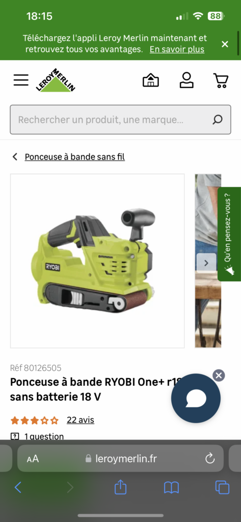 Location Ponceuse à bande électrique Ryobi à Carnetin