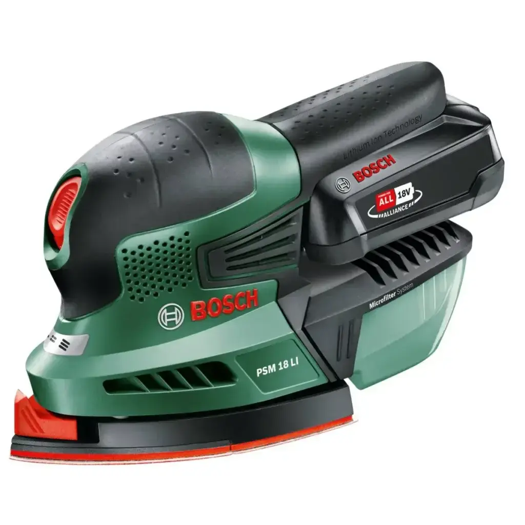 Ponceuse Multi sans fil à batterie Lithium-Ion PSM 18V : un outil sans fil polyvalent, puissant et compact.