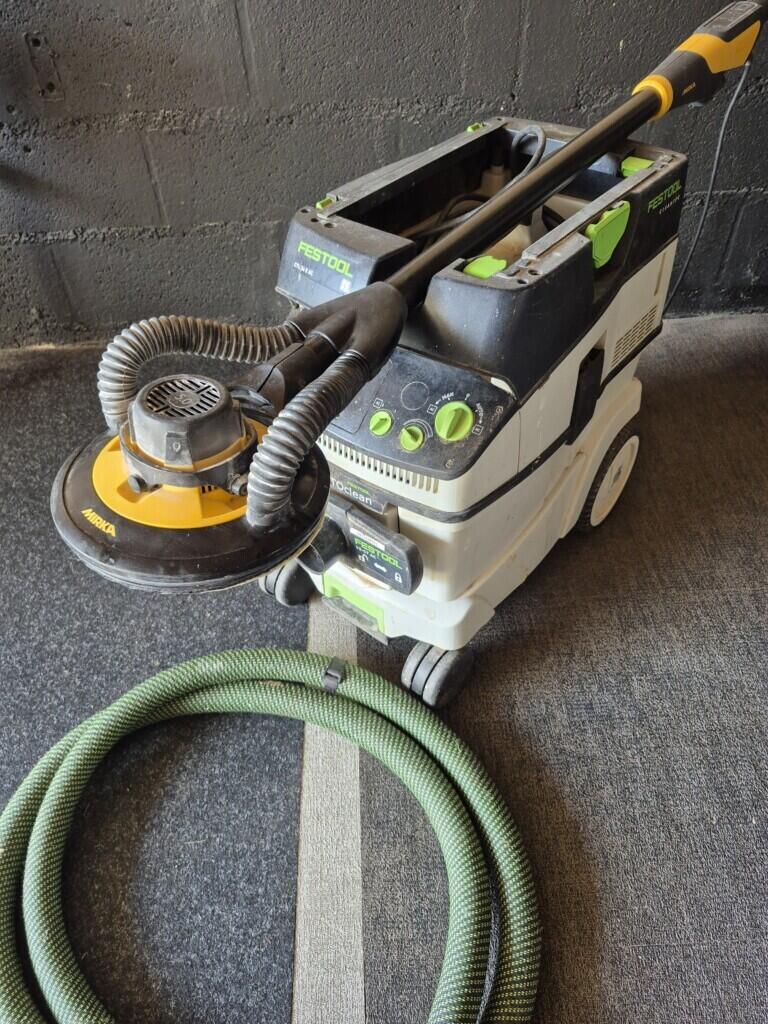 Je loue ma ponceuse Mirka Leros girafe pour travaux de ponçage du plâtre et bande à placo.