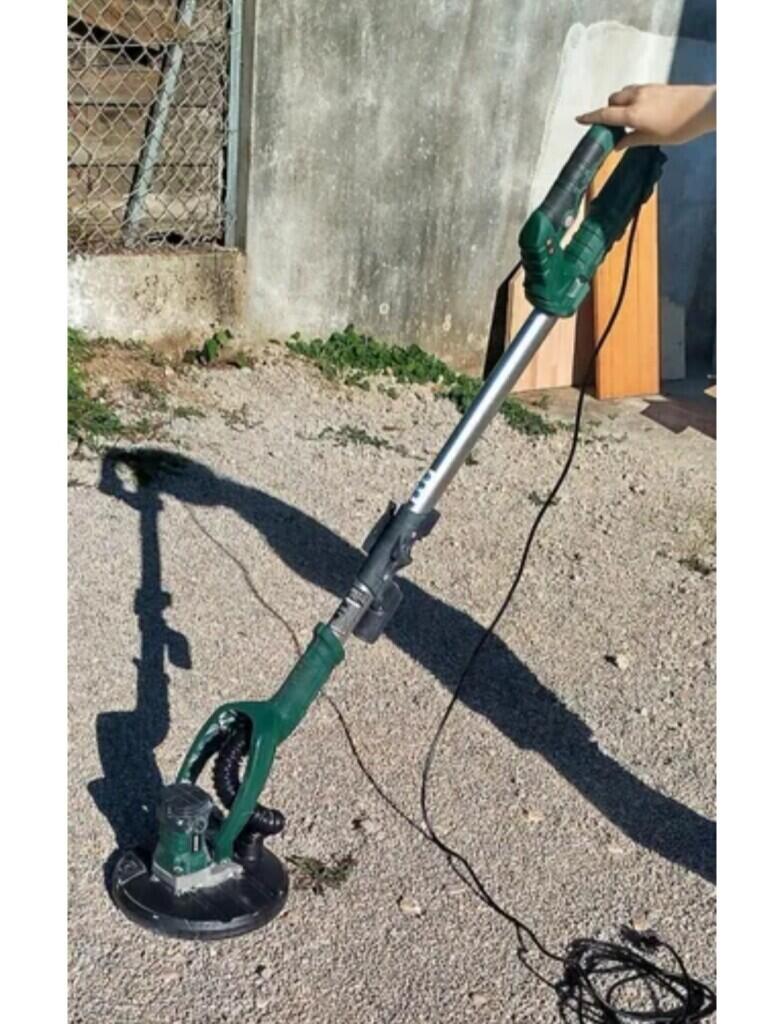 Ponceuse a placo Parkside avec sortie pour brancher un aspirateur de chantier ce qui limite au maximum la poussière , outil indispensable pour faire vos bandes a joint de placo au plafond .