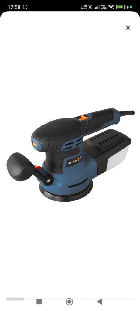 Ponceuse excentrique Dexter, filaire, 350W, utilisable avec des disques de 125mm.