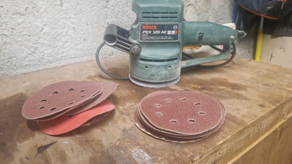 Ponceuse Bosh excentrique filaire avec sac de récupération de poussière, disques a disposition ( grain 80 , 120 , 160 ,240 )