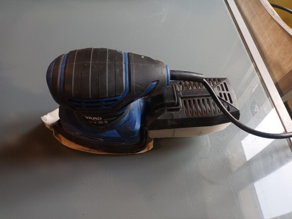 Petit modèle, forme triangulaire, récupérateur de poussière à l'arrière, possibilité de brancher un aspirateur.