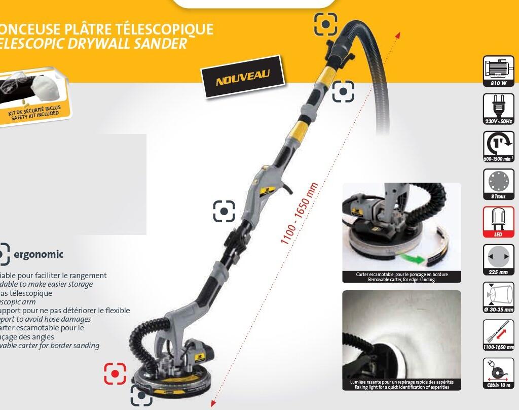 Pour poncer plaquo, disques de ponçage fournis. Peut se brancher à un aspirateur de chantier pour éviter la poussière.