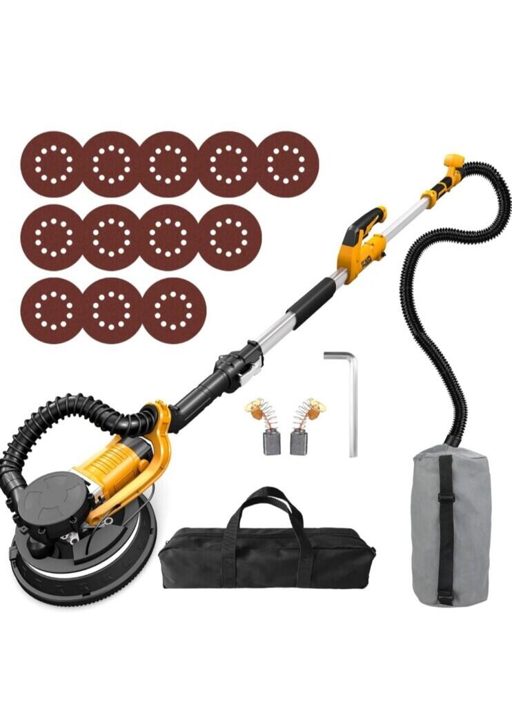 ZHJAN Ponceuse Girafe avec Système d'aspiration Automatique (880w), 5 vitesses,1000-2100rpm, Ponceuse Murale Électrique Pliable, avec lumière LED, Poignée Pliable et Sac d'aspiration