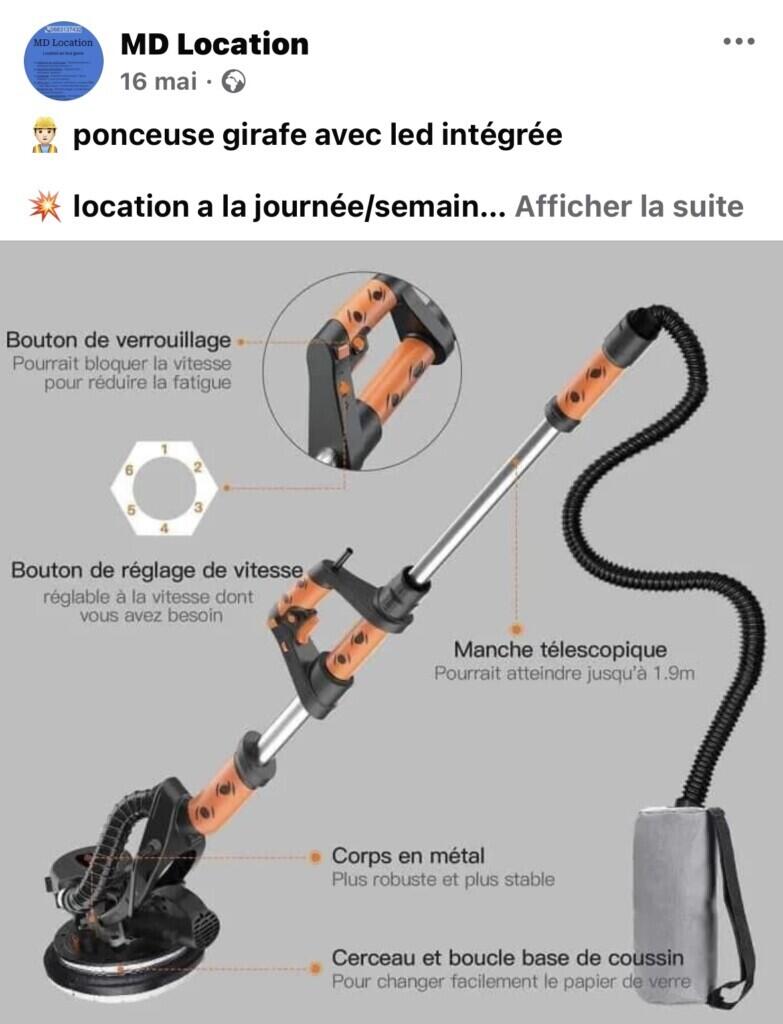 Ponceuse girafe avec led et aspirateur intégré à la girafe