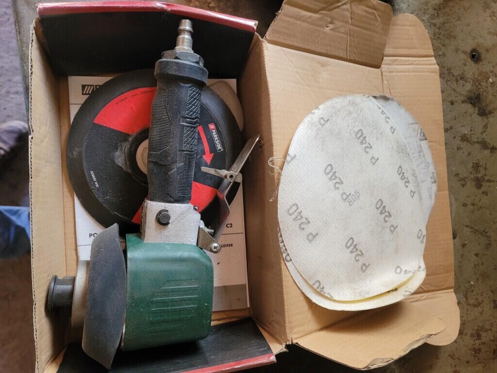 Ponceuse orbitale à air comprime, en très bon état, juste poussiéreuse.