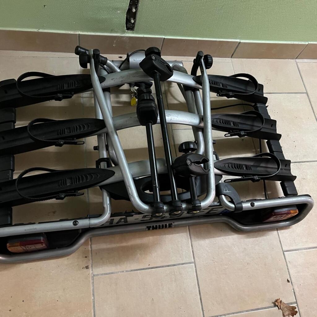 Je propose à mon porte vélo THULE (3 vélos) à fixer sur attelage, basculant pour ouvrir le coffre sans retirer les vélos. C'est un modèle très costaud avez clé pour empêcher le vol. Matériel propre donc à restituer propre.