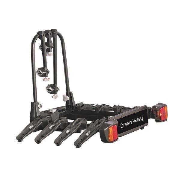 Le porte-vélos plateforme sur attelage EVASION 4 de la marque GREEN VALLEY est conçu pour transporter 4 vélos et peut supporter jusqu'à 60 kg. Il est donc compatible avec 2 vélos à assistance électrique maximum*. La charge maximale par rail est de 30 kg.
