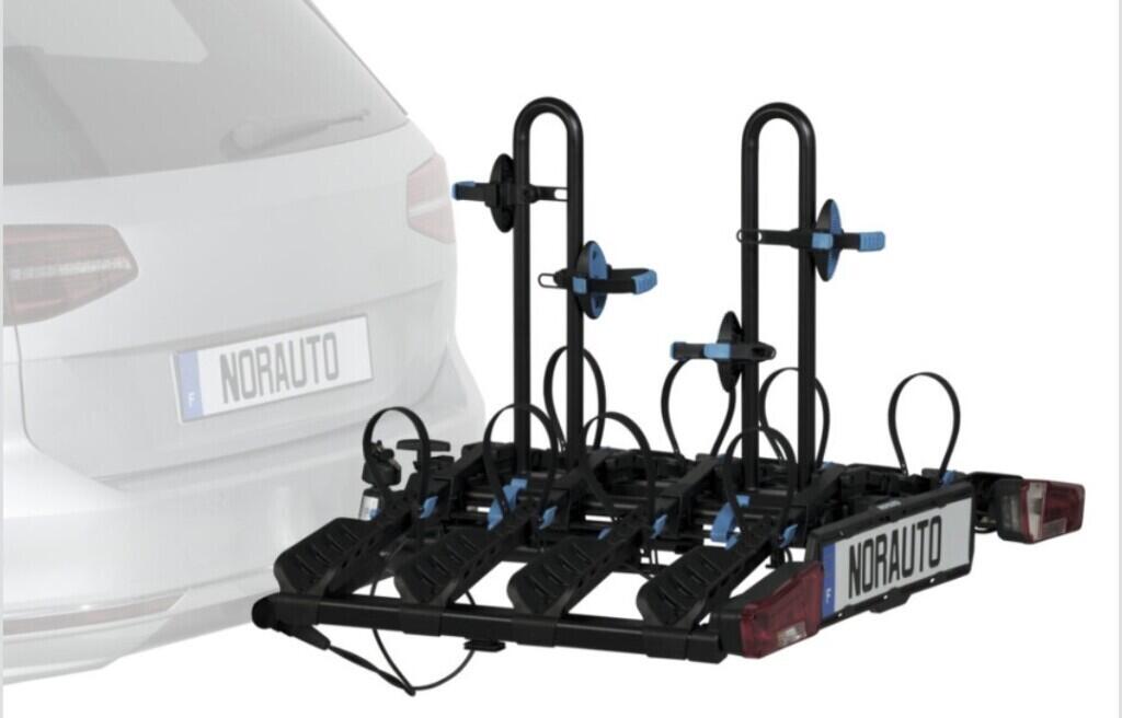 Porte velo de chez norauto qui se fixe sur l'attelage avec anti vol.