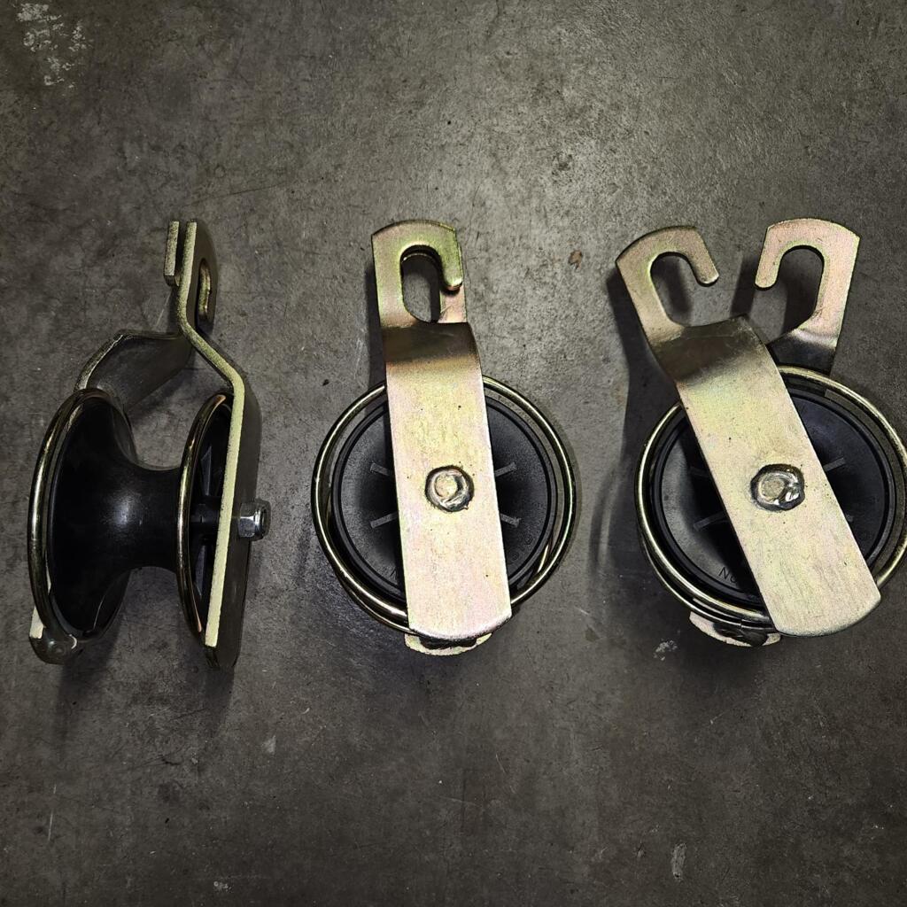 Location poulie à crochet en acier avec réa en nylon pour cordage ou cables gainés, capacité diamètre 50mm, charge maximale utile en levage kg. Modèle pro Ensto PM70.