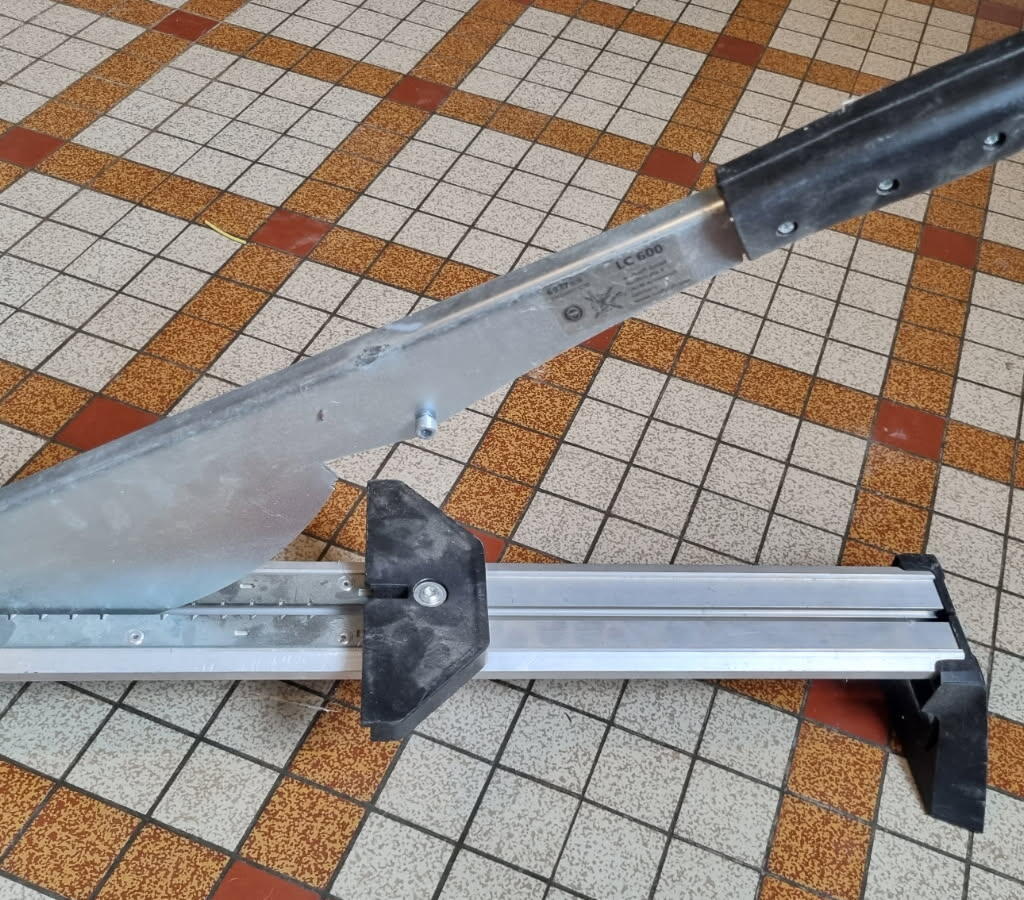 Presse coupante manuelle Wolfcraft en bon état. Cet outil polyvalent en métal est idéal pour couper les sols stratifiés.
