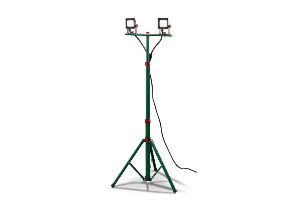 Location d’un double projecteur de chantier 2x30W, lampes indépendantes orientables.