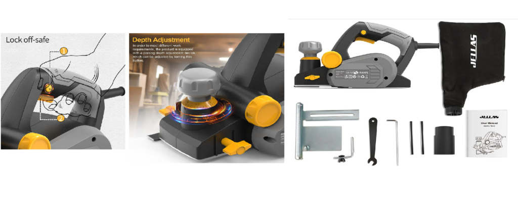 Rabot Électrique, JELLAS 16800RPM Rabot, Largeur de Rabotage 82 mm, Épaisseur des Copeaux 2 mm, 2 Lames Réversibles HSS et 710W, un Guide Parallèle