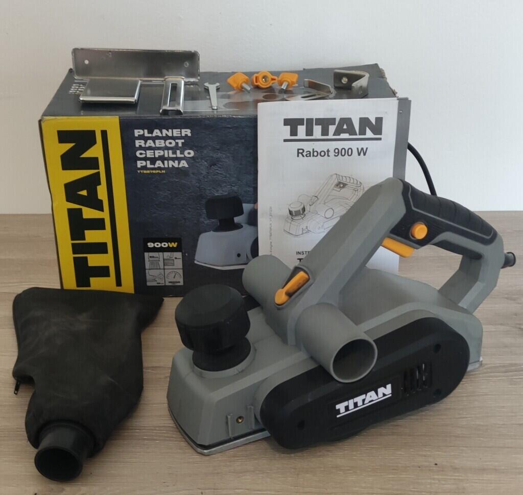 Bonjour, je propose à la location ce rabot électrique Titan 900W avec accessoires et notice :