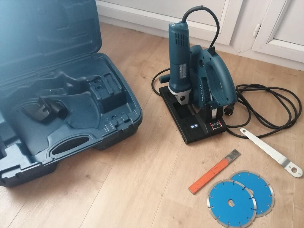 Bosch pro 1400W , outil performant et de qualité. Diametre de la lame 150, profondeur jusqu’a 35mm, ecartementde 3 a 39mm Ideal pour réaliser des entailles afin de faire passer gaines electrique dans les murs de béton ou de brique. Outil équipé de deux disques à segments diamantés capables de produire des coupes à sec dans le mur. Fournis avec la rainureuse un burin plat pour faire sauter la partie du milieu..