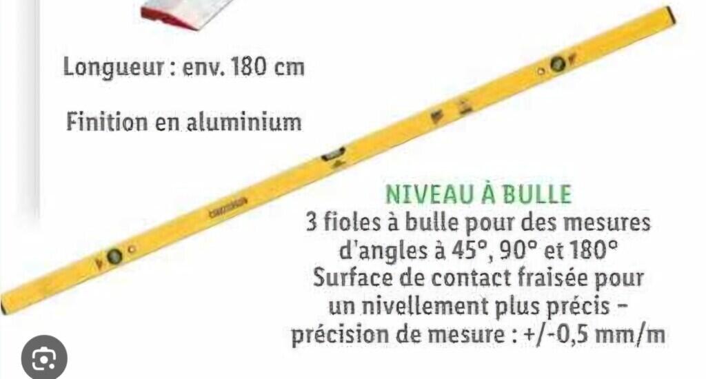 Règle de 180cm avec niveau à bulle intégré. Très légère et très pratique.