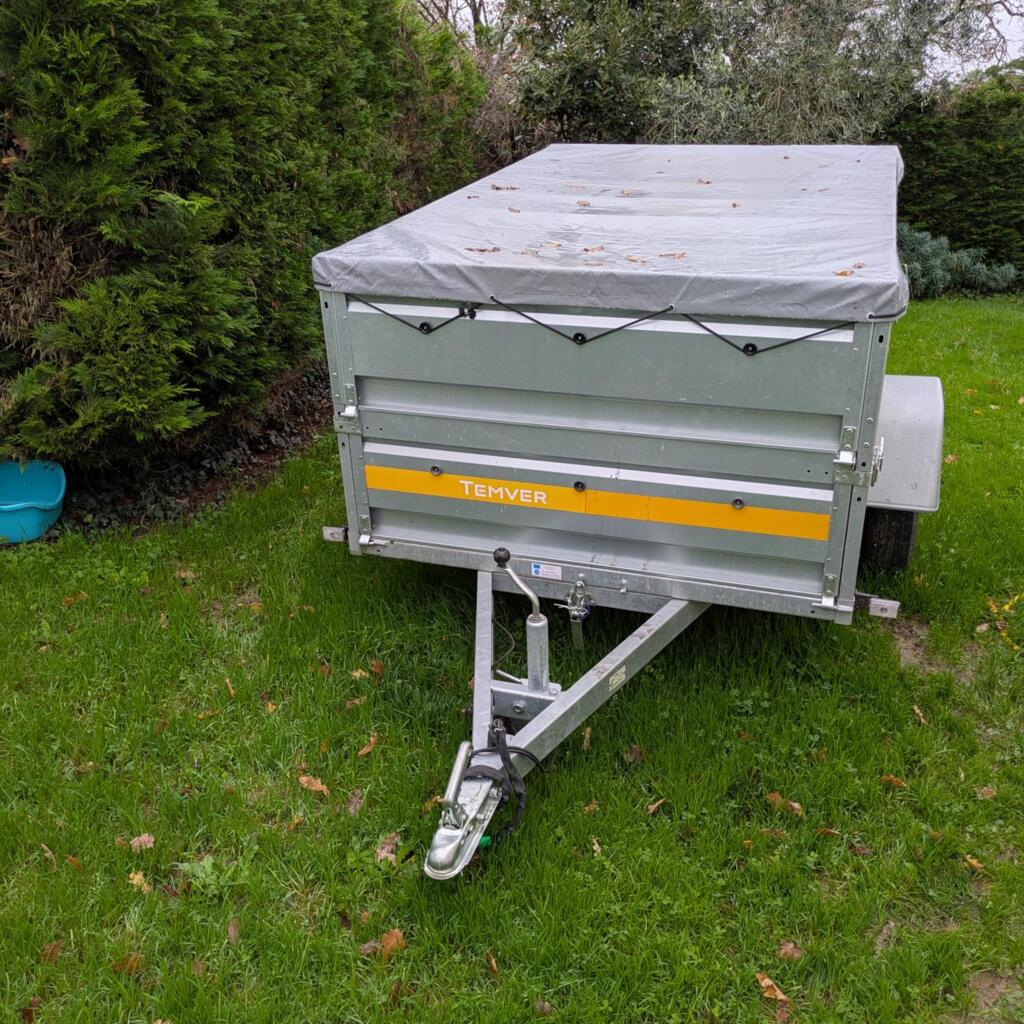 Remorque avec attelage boule équipé de double ridelle et bâche