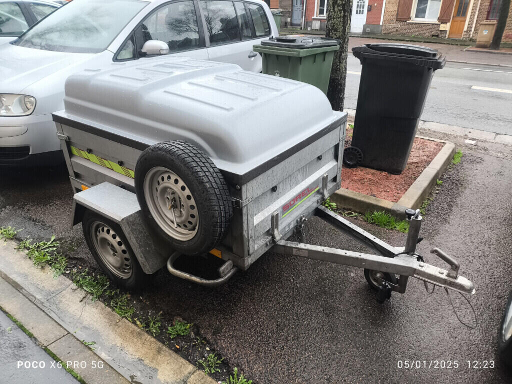 Remorque bagagere avec capot, fermeture du capot a clé.