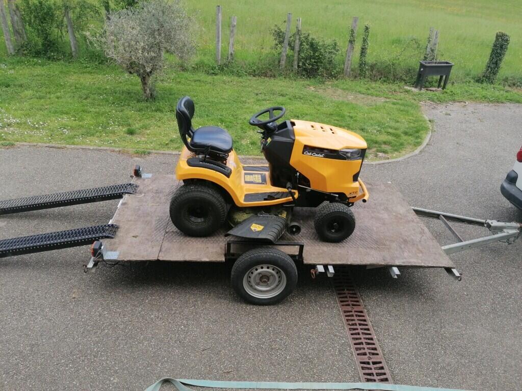 Je loue ma remorque plateau peut servir à transporter, tracteur tondeuse, gros meuble, peux même s'adapter en porte moto. Je la fourni avec deux rampes, le rail pour attelé la moto et les sangles si besoin.