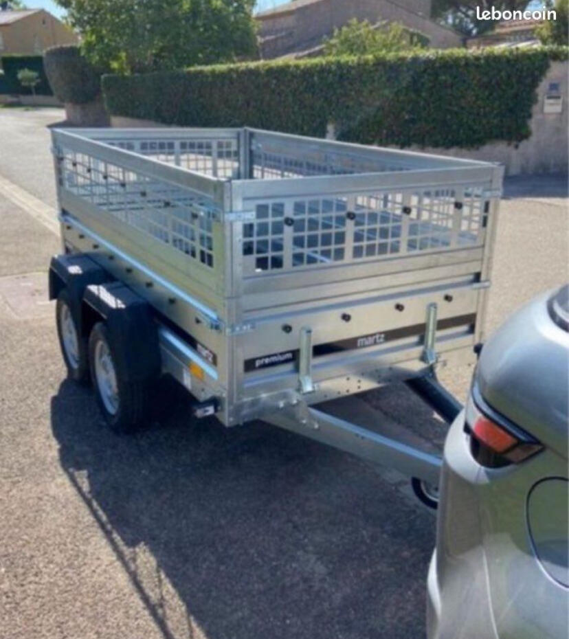 Location remorque double essieux 750kg, pas besoin de permis spécifique.