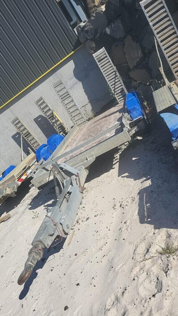 Remorque porte engin équipée de tendeur et chaîne d’arrimage aux normes européennes avec une responsabilité civile. Tout locataire devra fournir une attestation d’assurance avant la location.