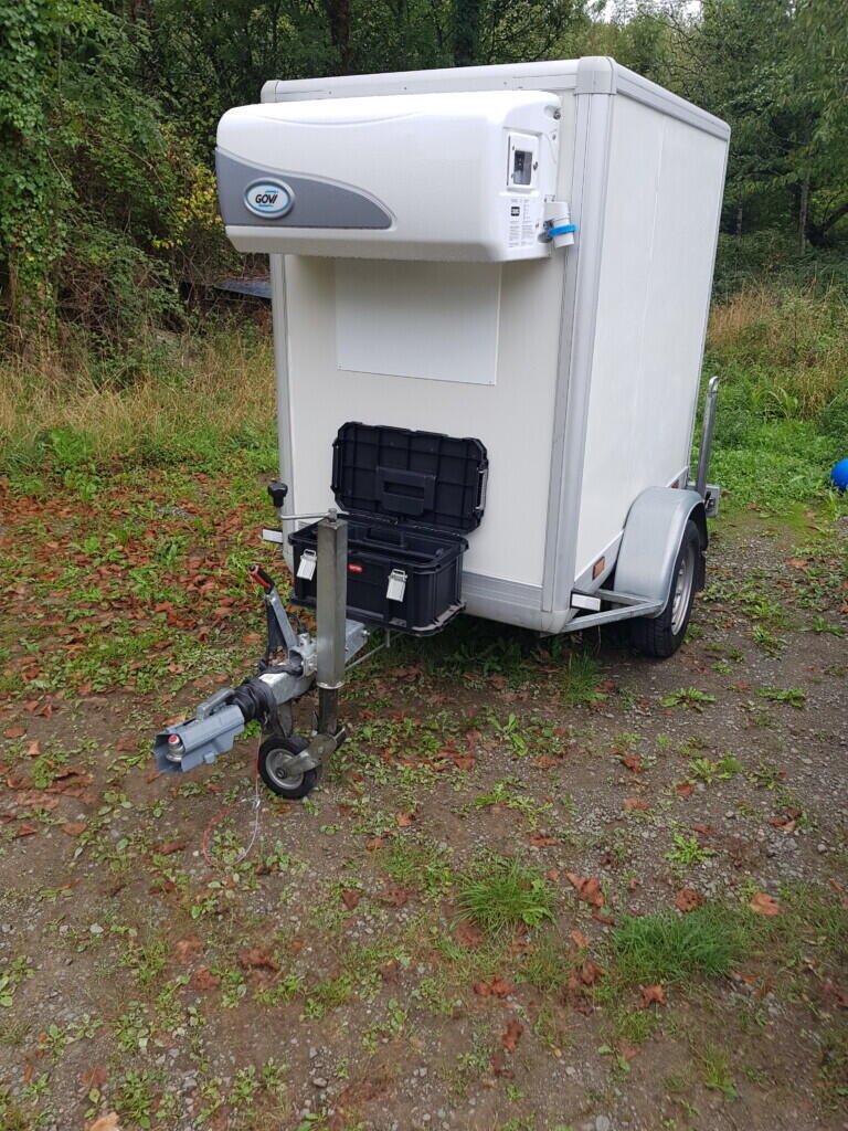 Bonjour, Je loue une remorque frigo 3m3 avec étagère centrale, Moteur électrique 220v, 1 porte arrière. Adapté jusqu'à 130 personnes.