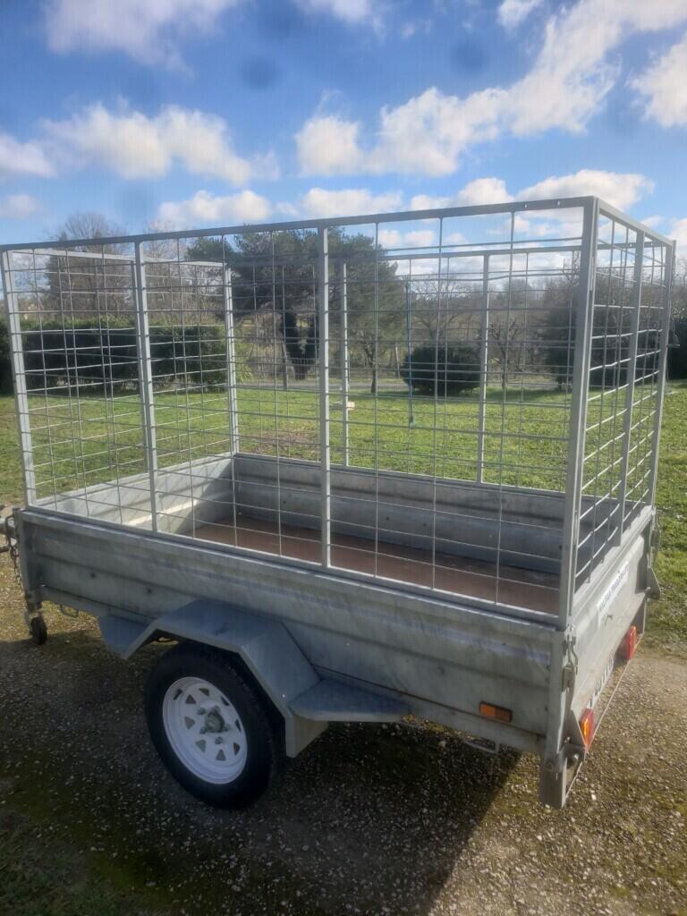 Cette remorque propose un volume de chargement utile (L × l × h) de 205 × 120 × 130 cm, avec une capacité de charge maximale de 500 kg. Elle est équipée d’une réhausse grillagée pour optimiser le transport, d’une porte à l’arrière et d’une ridelle rabattable pour faciliter le chargement. De plus, elle dispose d’un double marchepied de chaque côté des roues pour faciliter le sanglage.
