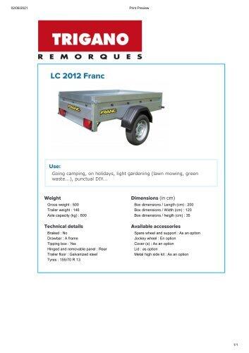 Remorque trigano, longueur 255cm, largeur 147cm, hauteur 35cm / 70cm de hauteur en doublant les barrière.