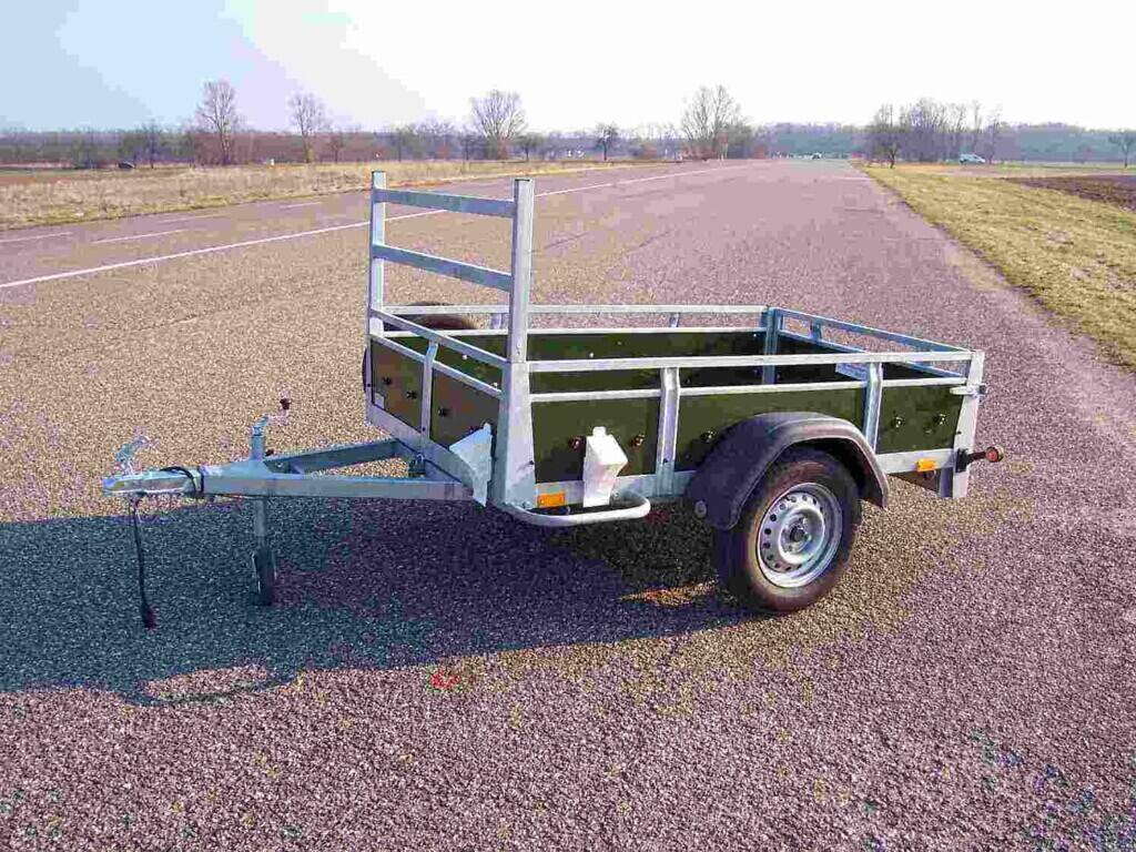 Remorque non freinée, modèle IVEO / CARGO, roue de secours, ridelle AR rabattable, benne basculante, roue jockey, porte-échelle, bâche
