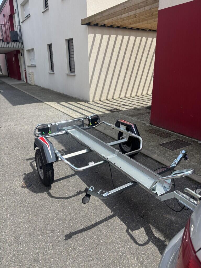 La remorque moto ERDE PM320 à 1 rail est conçue pour transporter une moto ou un scooter en toute sécurité.