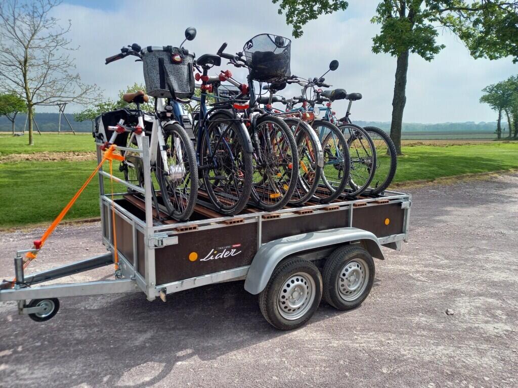 remorque LIDER double essieux avec antivol équipée pour transporter 7 vélos +bagages