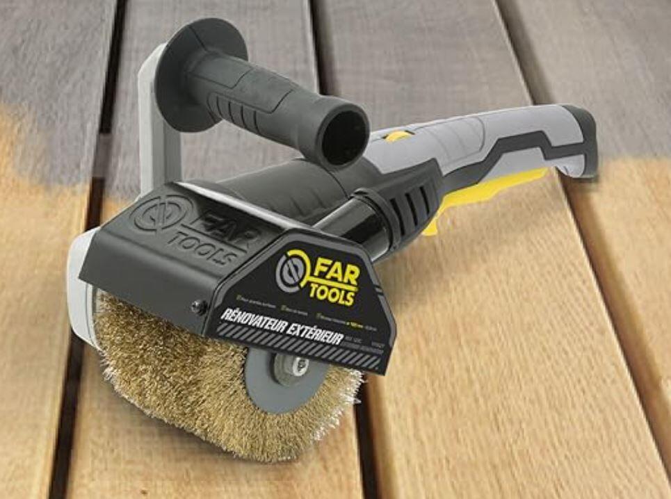 Pour rénover tous types de bois extérieur. Puissant et efficace, permet de poncer et brosser pour un nettoyage complet. Collecteur de poussière. Maniable avec sa poignée anti-vibration et un régulateur de vitesse. Spécialement conçu pour le bois extérieur. Brosses souples et interchangeable permettant la rénovation de tout type de matériaux. Idéal pour les terrasses, mobiliers de jardin, piscines hors sol, abris de jardin et aussi portails en métal, volets, etc´