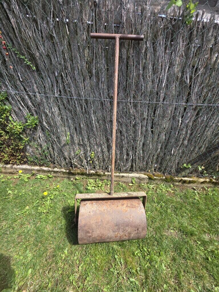 Ancien rouleau à gazon en métal, largeur du cylindre pour tassé 51 cm