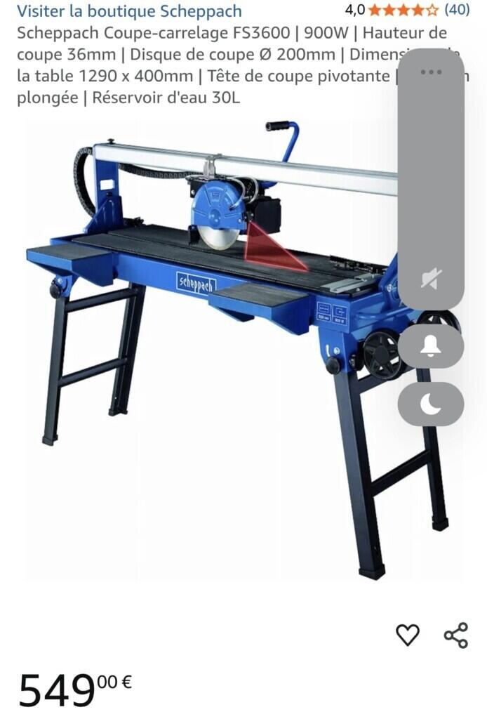 Coupe carrelage à eau. Hauteur de coupe jusqu'à 36mm, table 1290×400 mm.