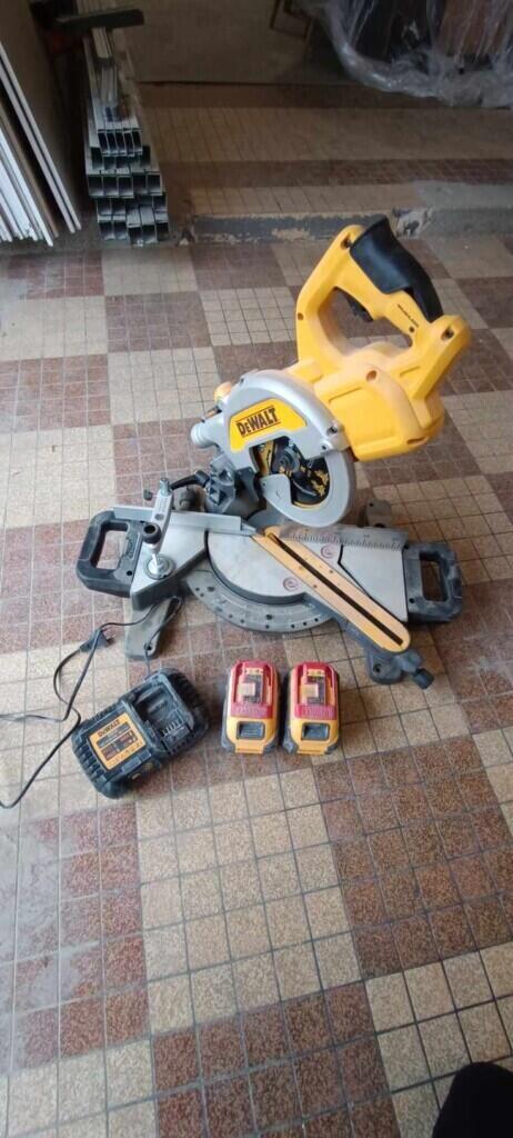 Scie a onglet radiale sur batterie 54V. Très peu utilisée, elle sera fournie avec 2 batteries 54V ainsi qu'un chargeur
