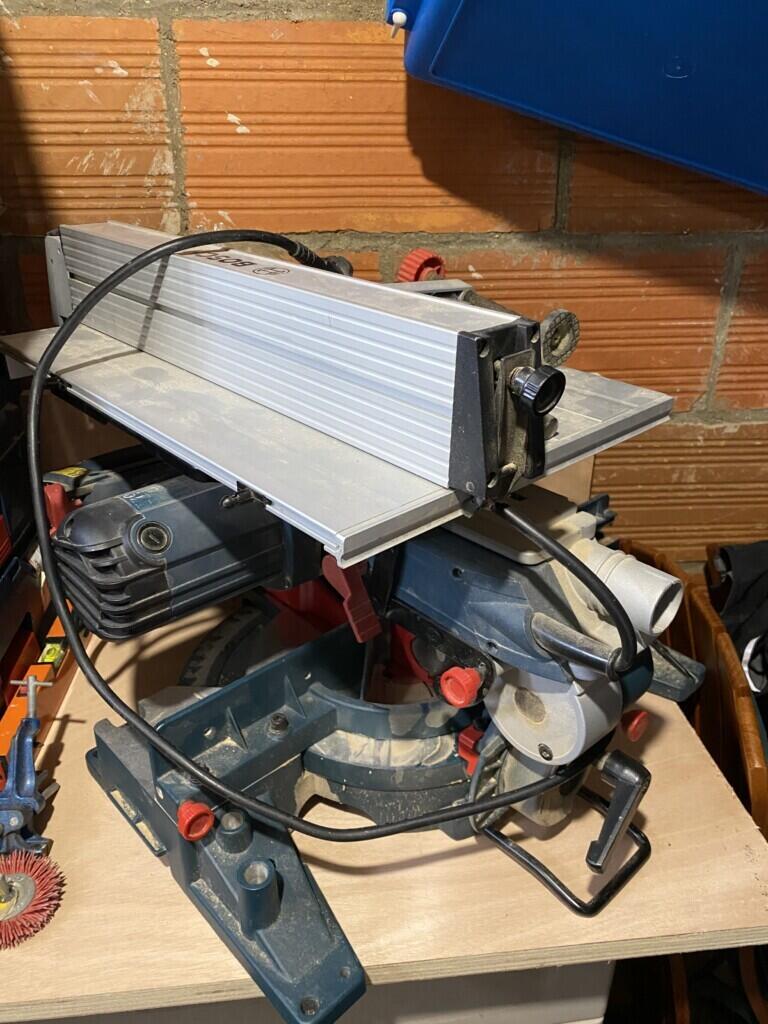 Scie à onglet Bosch Gtm 12 JL + GTA 2600 avec lame neuve et plateau de délignage