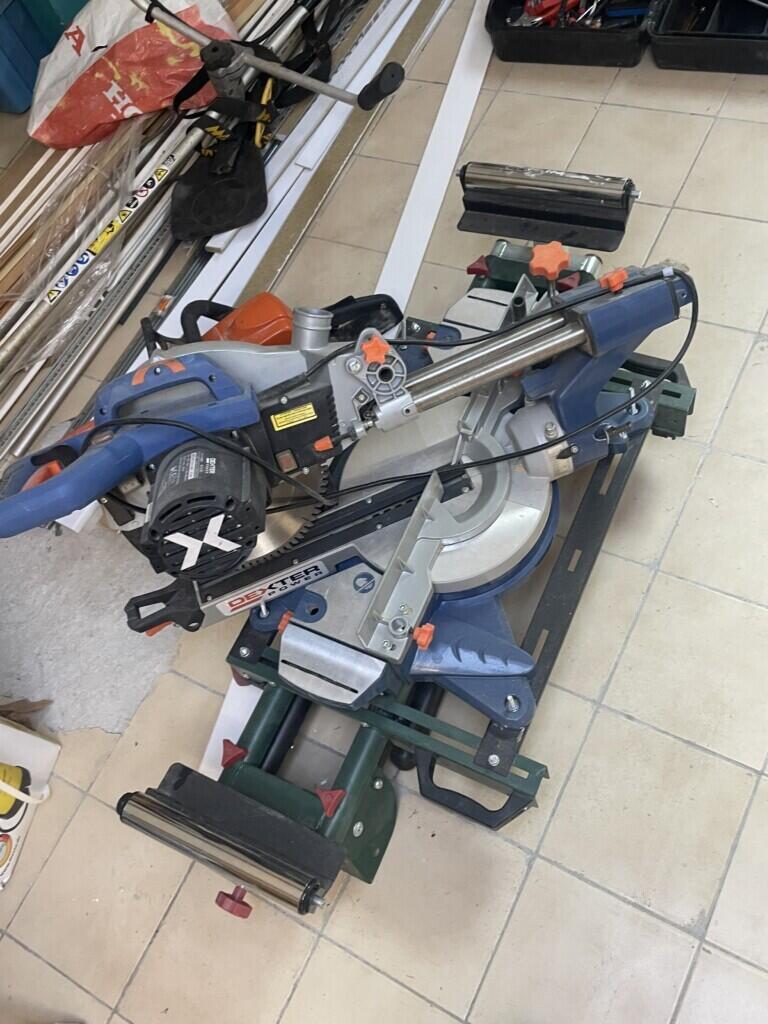 Je propose à la location ma scie à onglet de la marque Dexter. Idéale pour vos travaux de découpe de bois, plinthes, cadres et autres matériaux avec une précision optimale.