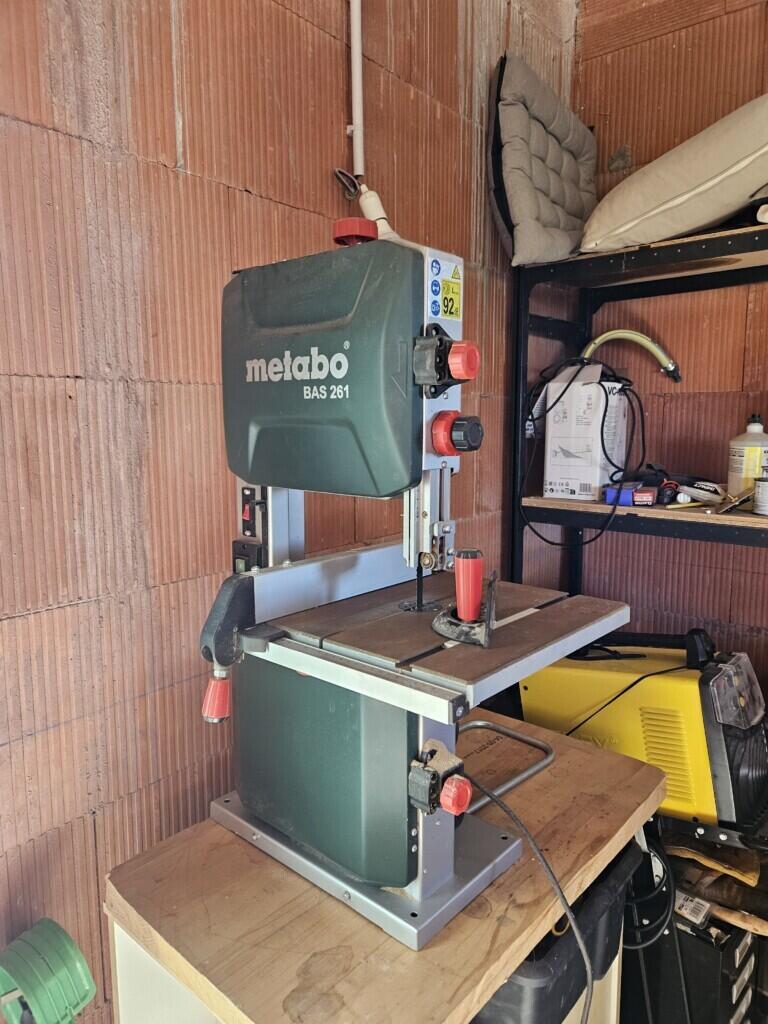 À louer scie à ruban Metabo BAS 261 Precision (270 W) – hauteur de coupe 103 mm, largeur de passage 245 mm, LED intégrée.