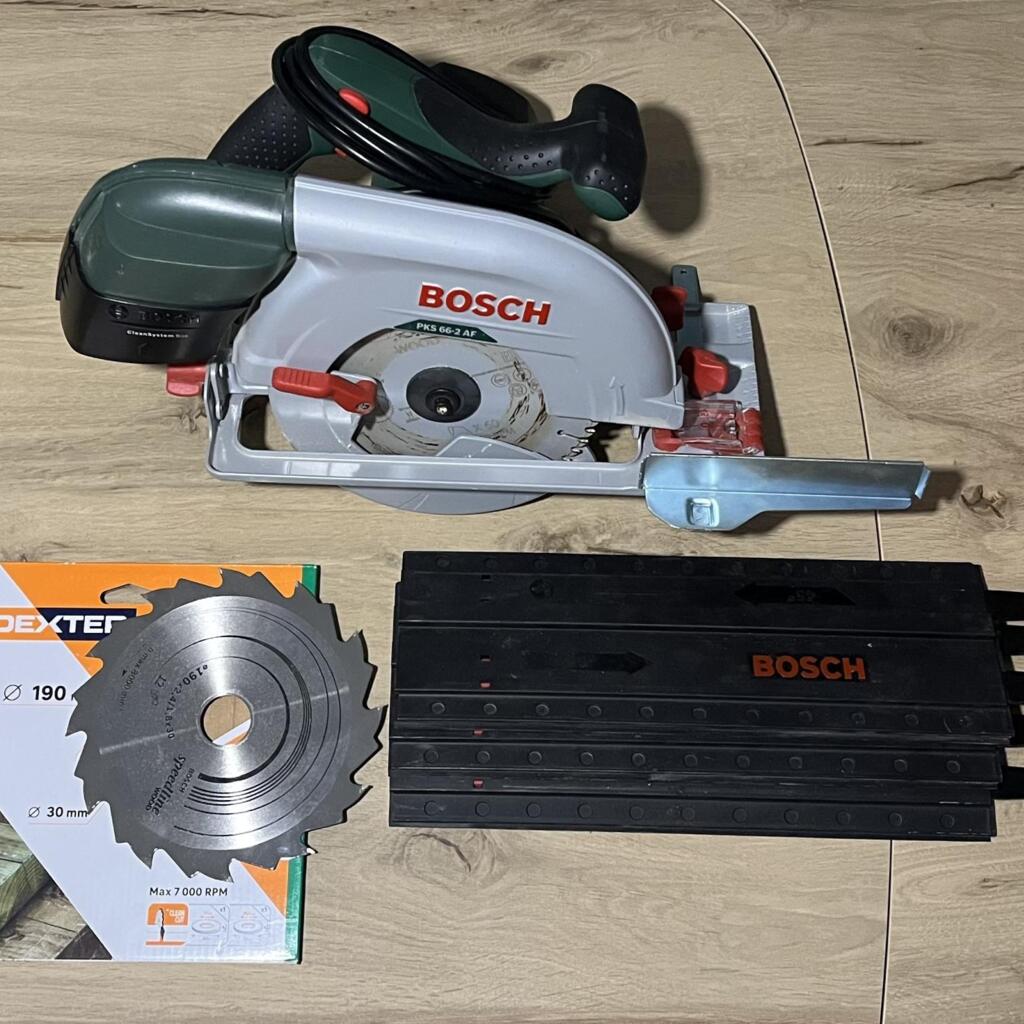 Scie circulaire de BOSCH, idéal pour réaliser des coupes droites précises dans les bois durs et épais, comme pour la découpe de portes ou la construction d'un abri.