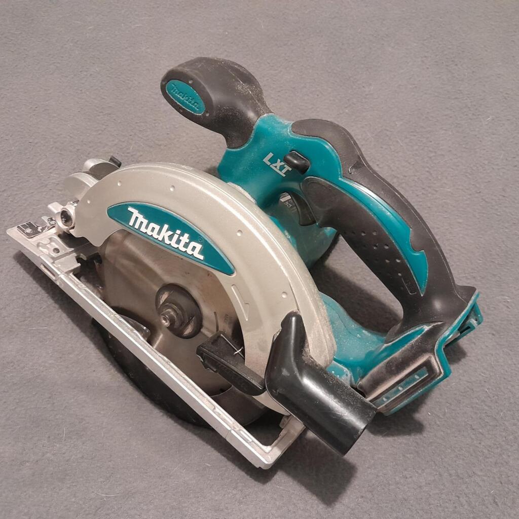 Scie circulaire Makita sans fil avec disque, batterie et chargeur.