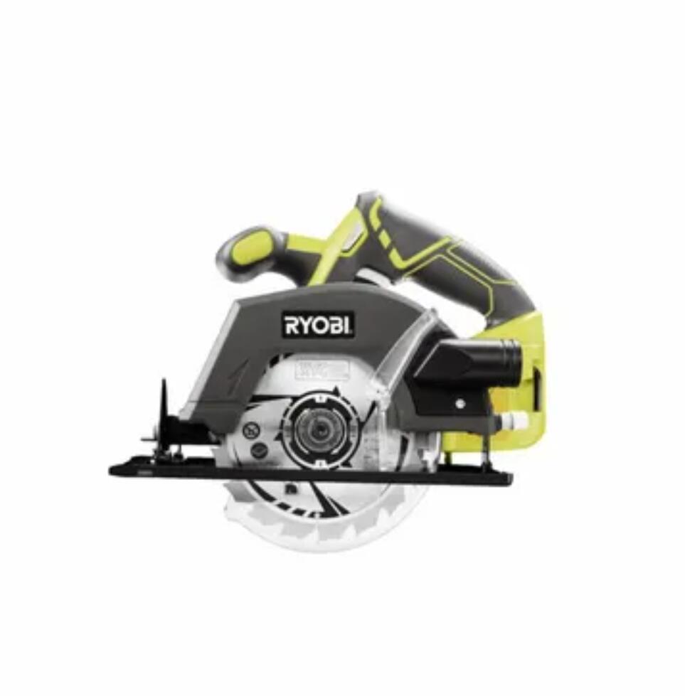 Scie circulaire sur batterie, louée avec une batterie 4.0Ah et un chargeur et petit guide de coupe.