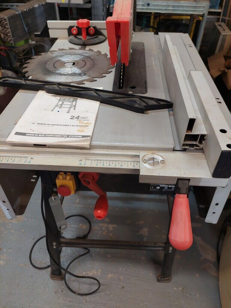 Scie sur table en très bon état + manuel livrés avec deux lames et pousoir